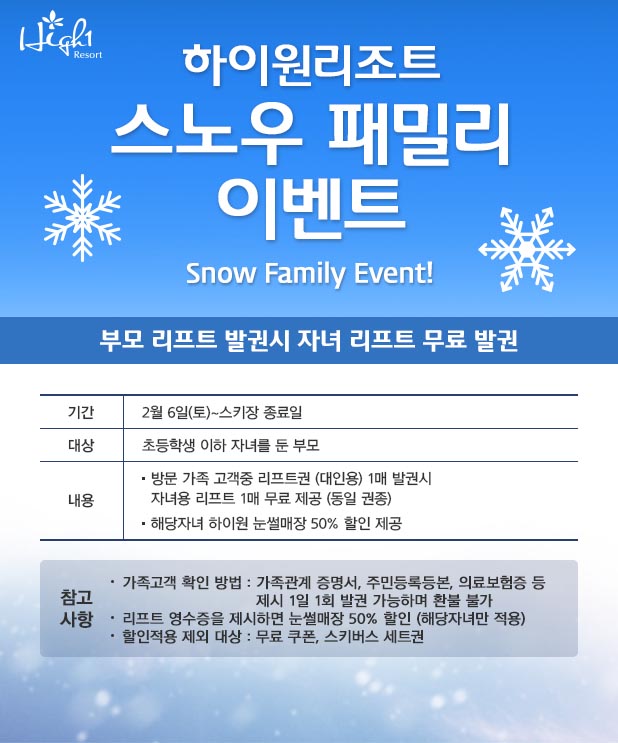 [하이원스키장 이벤트] 하이원리조트 스노 패밀리 이벤트